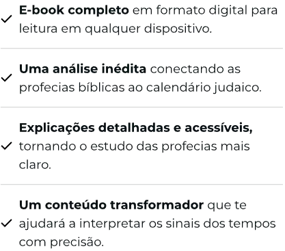 Este livro é para estudiosos da Bíblia, curiosos sobre profecias e buscadores de respostas que desejam entender as conexões entre os eventos proféticos e o calendário judaico. Se você sente que o mundo está mudando rapidamente e quer se preparar, este material é ideal para você.